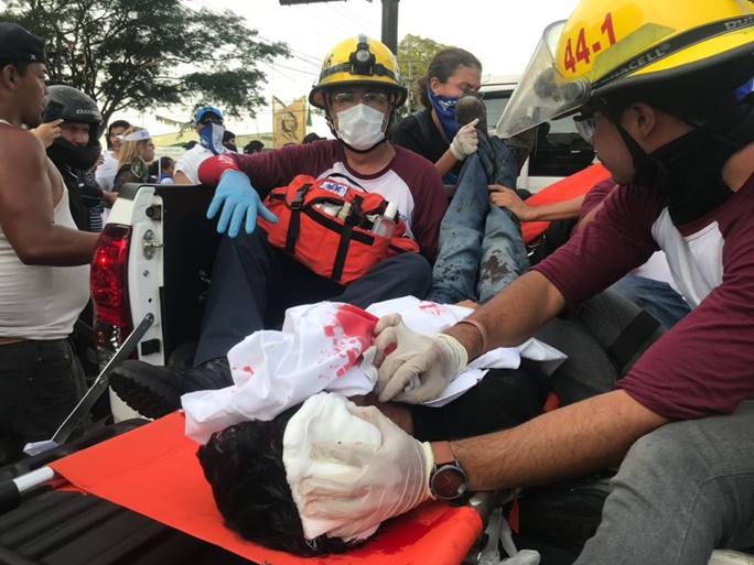 One of those wounded in the area surrounding the Central American University where the peaceful demonstration in support of Nicaraguan mothers was to conclude. Photo: Wilfredo Miranda / Confidencial