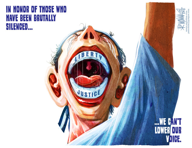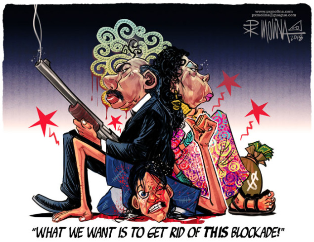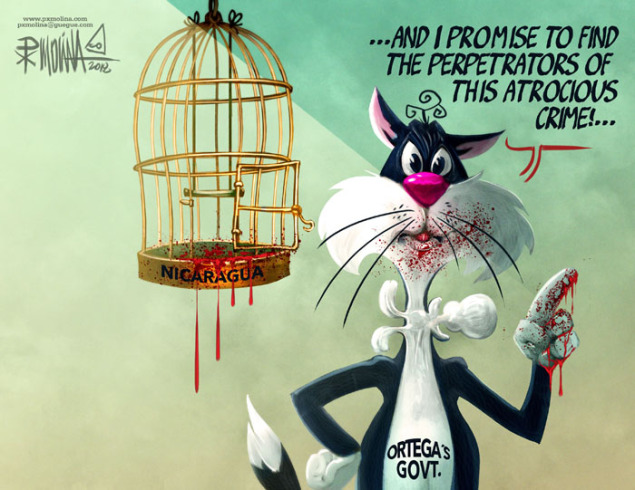 Molinas said as a cartoonist, his job is to make people think, and maybe laugh. “We often draw situations that look hard, crazy, irrational, unbelievable,” he said. With each day that goes by, he said, even his most outlandish cartoons are beginning to look like the reality in Nicaragua.