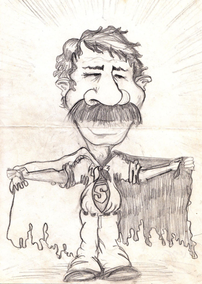 In that early cartoon, Ortega is depicted as a superhero donning the red and black Sandinista flag as a cape, which is in tatters. “Somehow at that time, a part of me already felt he was going to destroy FSLN legacy,” he said.