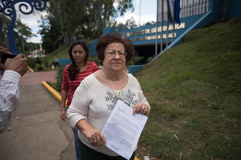 Dr. Vilma Nunez, in representation of the Nicaraguan Center for Human Rights (Cenidh), arriving at the Ministry of Governance to deliver a letter of grievance following the cancellation of the NGO’s legal status. Photo: Carlos Herrera