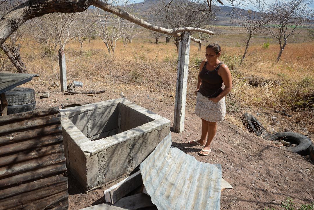 Karla Vargas observa el pozo de su casa que desde hace 7 meses no tiene agua. Carlos Herrera | Confidencial
