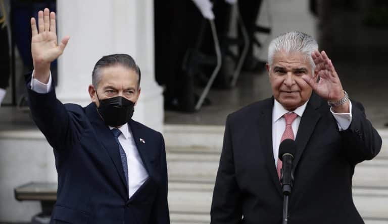 El presidente electo, José Raúl Mulino, junto al actual presidente de Panamá, Laurentino Cortizo (izq.). Foto: EFE/ Bienvenido Velasco