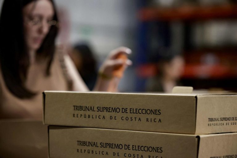 Vista de unas cajas del Tribunal Supremo de Elecciones (TSE) de Costa Rica, que contienen material electoral, el viernes 9 de enero de 2026. | Foto: EFE/Jeffrey Arguedas