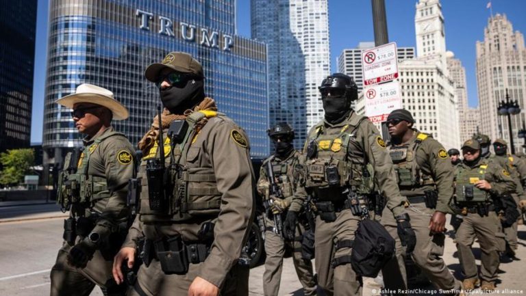 Agentes del ICE frente al edificio Trump de Chicago. | Foto: Ashlee Rezin/Chicago Sun-Times/dpa/picture alliance