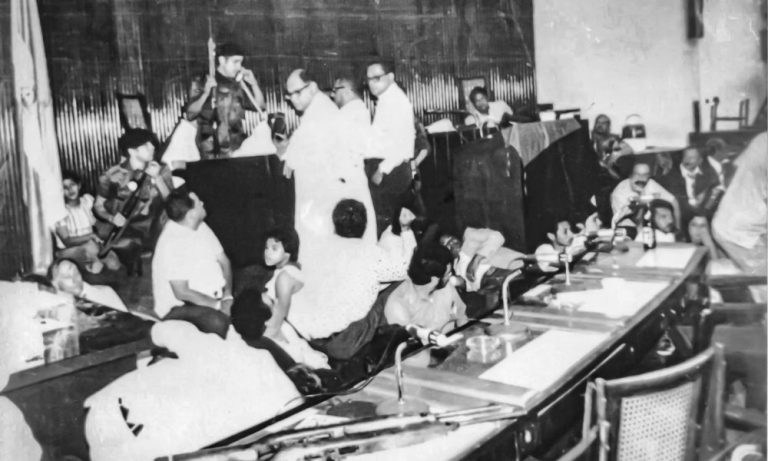 Guerrilleros, diputados somocistas y rehenes durante la toma del Palacio Nacional, ocurrida el 22 de agosto de 1978. Foto: Tomada de La Prensa
