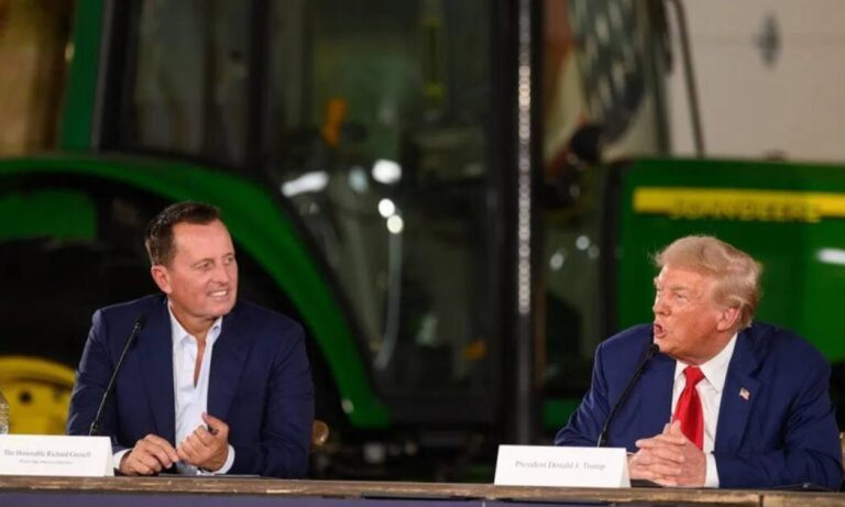 El presidente de EE. UU., Donald Trump (der.) junto a Richard Grenell, enviado especial para Misiones Especiales del mandatario estadounidense. | Foto: Tomada de La Verdad
