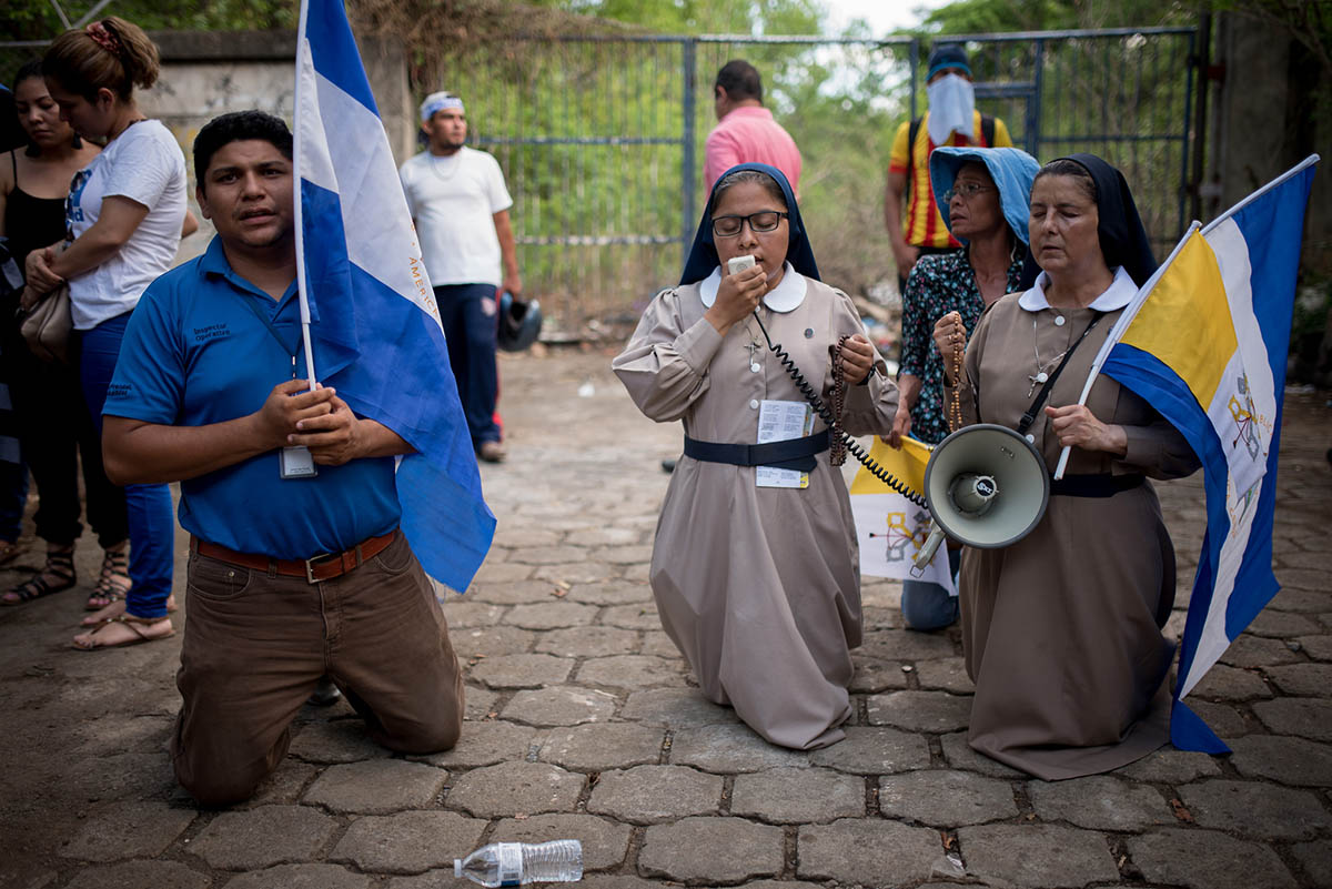 Feligreses y religiosas oraban en las afueras de la cede del Diálogo Nacional durante su segunda sesión. Foto: Carlos Herrera | CONFIDENCIAL