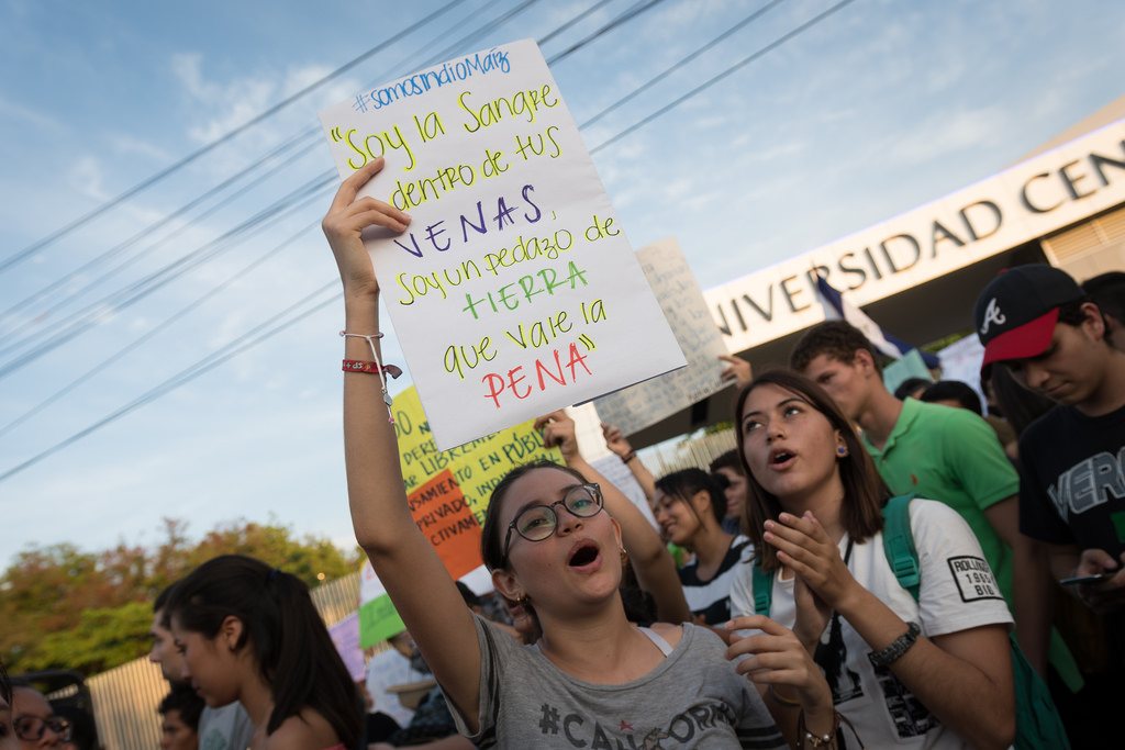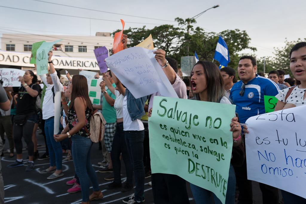 A partir de las 05:30 de la tarde, grupos de estudiantes universitarios, ambientalistas y activistas independientes llegaron a la entrada de la Universidad Centroamericana. Uno de ellos fue Javier Valdivia, un estudiante de ingeniería ambiental que asistió al plantón “ante la indignación de ver en algunos medios de comunicación cómo se minimizaba la crisis en Indio Maíz”.