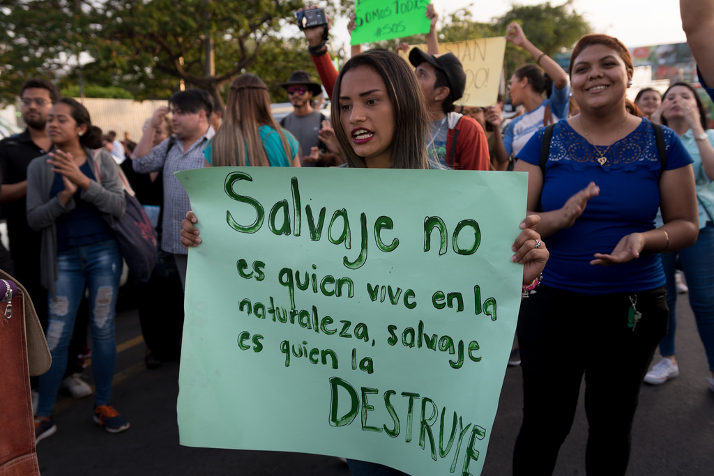 A lo largo de la tarde, se unieron a la protesta decenas de personas con carteles cargados de mensajes de indignación y reproche ante el Gobierno del comandante Daniel Ortega. Tampoco las consignas se hacían esperar: “¡Alerta!, ¡Alerta!, ¡Alerta! ¡Alerta que camina, la lucha ambientalista por Indio Maíz!” o “¡Si la patria se quema, uno verde la sueña!”.
