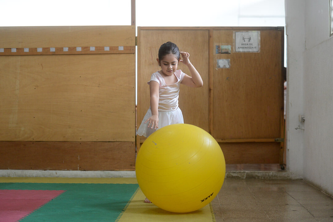 Alondra, –tutú rosa y pelo negro–, es una niña con autismo clásico. Hasta hace unos meses merodeaba en su casa como un pequeño fantasma, recuerda su mamá. Esquivaba miradas, no quería comer, ni se comunicaba. Podía quedarse en una misma posición durante horas. De pie. Acostada. O meciéndose en el balancín de su cuerpo. “Se mecía y se mecía viendo algún objeto que le gustara o chupándose el dedo, con una sabanita”, cuenta su mamá.