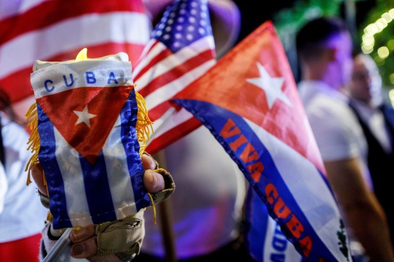 Ciudadanos sostienen unas pequeñas banderas de Cuba y Estados Unidos en una vigilia en Miami, Florida, el 26 de febrero de 2026. | Foto: EFE/Cristóbal Herrera-Ulashkevich