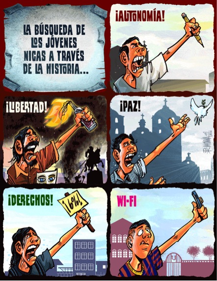“Una chavala hace política cuando decide no ser madre. Un chavalo hace política cuando cuestiona sus privilegios. Un chavalo y una chavala hacen política cuando publican en su estado de facebook, twitter o cualquier red social, el torpe actuar de funcionarias/os públicos o cuando escribe una entrada en un blog, cuando hace video o fotografías sobre algo que no les gusta del sistema político, o algo que los hace sonreír. La juventud hace política cuando sale a la calle a gritar ¡No más corrupción! ¡Salvemos a Bosawás! ¡No a las reformas a la constitución! ¡No a la construcción del gran canal! ¡Educación de calidad y empleos dignos para la juventud! ¡Tengo derecho a decidir sobre mi cuerpo! ¡No más discriminación por orientación sexual e identidad de género! ¡No quiero tu piropo, quiero tu respeto! ¡Tenían derecho a la vida! ¡Ni una más, ni una asesinada más! Esto es hacer política, esto es participación comunitaria, esto es movilización social ¿Estoy equivocado?”