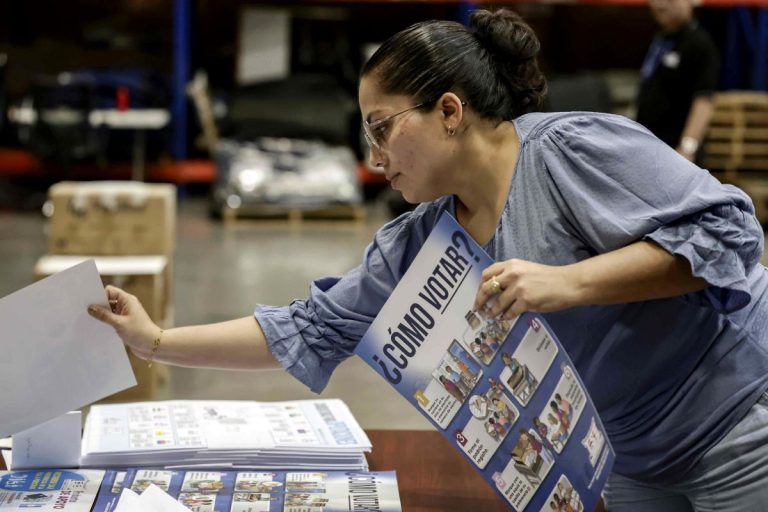 Una integrante del Tribunal Supremo de Elecciones (TSE) de Costa Rica organiza material electoral en San José, el 9 de enero de 2026. | Foto: EFE/Jeffrey Arguedas