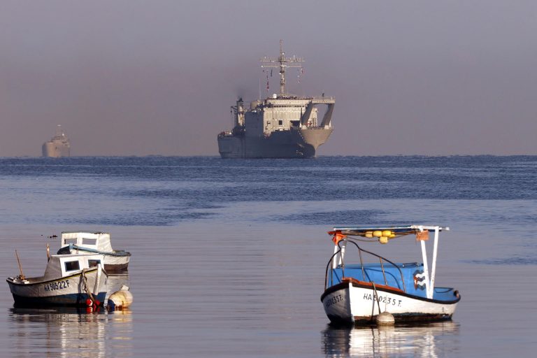 Fotografía que muestra a pequeñas embarcaciones navegando frente a un barco de ayuda humanitaria procedente de México en el puerto de La Habana (Cuba). EFE