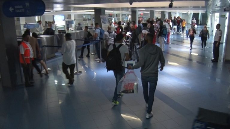 Un grupo de pasajeros es atendido en el área de Migración del Aeropuerto Internacional de Nicaragua. | Foto: Tomada de El 19 Digital