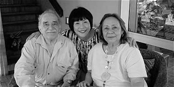 La poetisa Satoko Tamura, decana de la Facultad de Literatura de la Universidad de Teikyo, en Tokio, traductora al japonés de Gabriel García Márquez, y Vargas Llosa, entre otros, posa junto a Gabo y su esposa Mercedes Barcha. Foto Tomada de El Tiempo, de Bogotá.