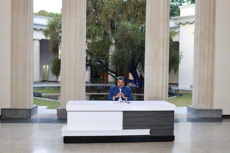 El presidente de Venezuela, Nicolás Maduro, habla durante la transmisión del programa “Maduro +”, desde el Palacio de Miraflores en Caracas, el 13 de octubre de 2025. | Foto: EFE/Palacio Miraflores