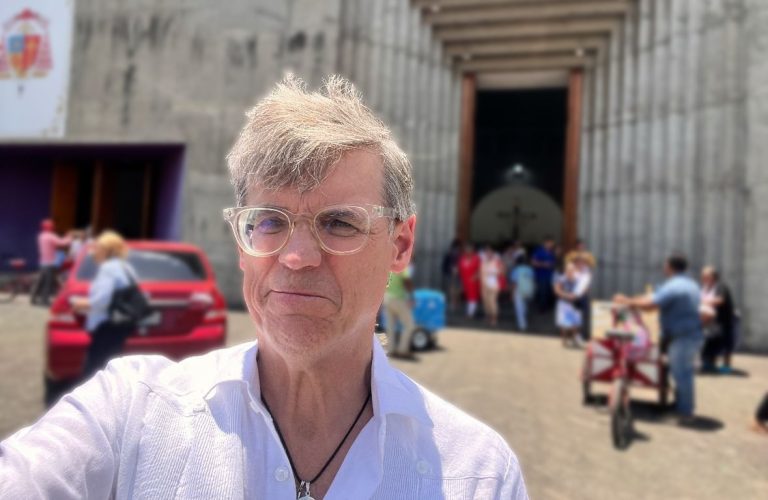 ‘Selfi’ de Kevin Michael O’Reilly, encargado de negocios de EE. UU. en Nicaragua, afuera de la Catedral Metropolitana de Managua, el 20 de abril de 2025. Foto: Tomada del X de Kevin O’Reilly