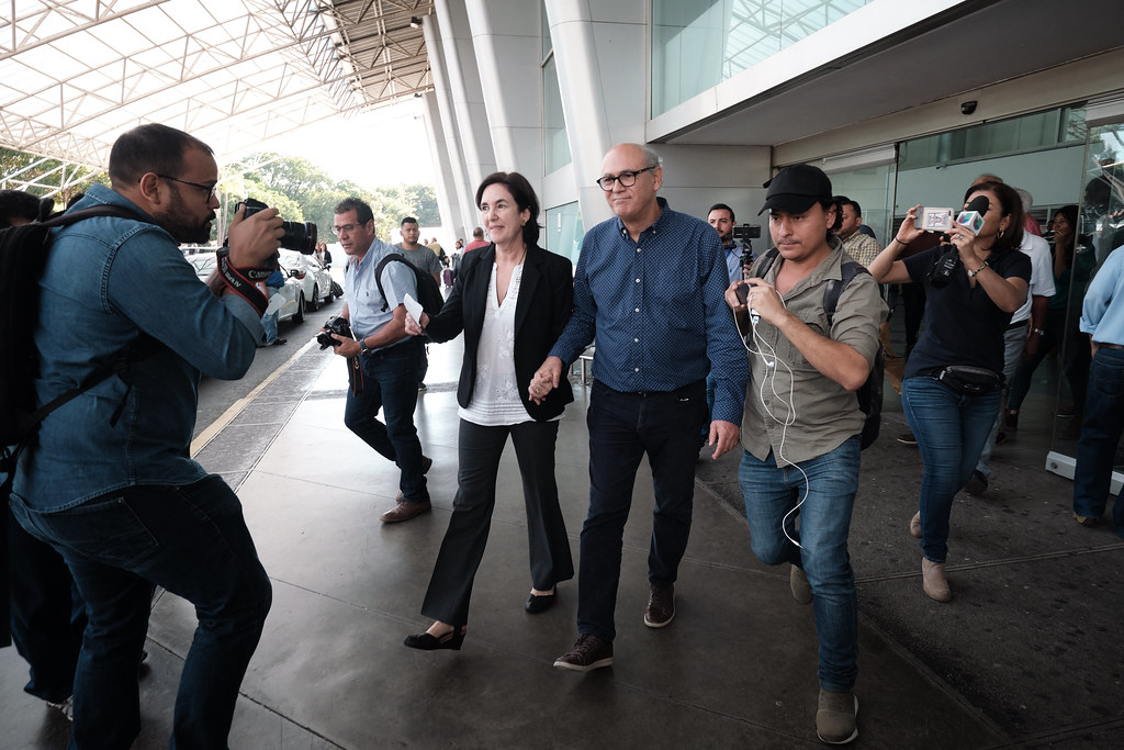 El periodista Carlos Fernando Chamorro y su esposa Desirée Elizondo a su llegada a Managua. Carlos Herrera | Confidencial