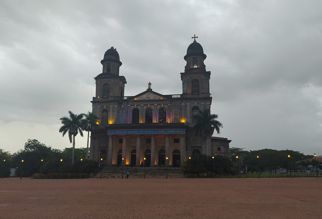 La Plaza de República, también conocida como Plaza de la Revolución, completamente vacía, en la víspera de la celebración del 19 de julio, en Managua. // Foto: Nayira Valenzuela.