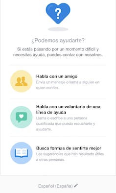 En este escenario, Instagram ha lanzado recientemente un nuevo servicio en el que ofrece ayuda a quien busque las etiquetas #ansiedad y #depresión. Como resultado, aparece una pregunta: “¿Podemos ayudarte?”. Al hacer clic en ella, este servicio ofrece tres posibles respuestas: aporta consejos generalistas que pueden ayudar (por ejemplo: cambiar de entorno), ponerse en contacto con un amigo o familiar y, por último, llamar al Teléfono de la esperanza, que es un servicio de consulta psicológica telefónica.