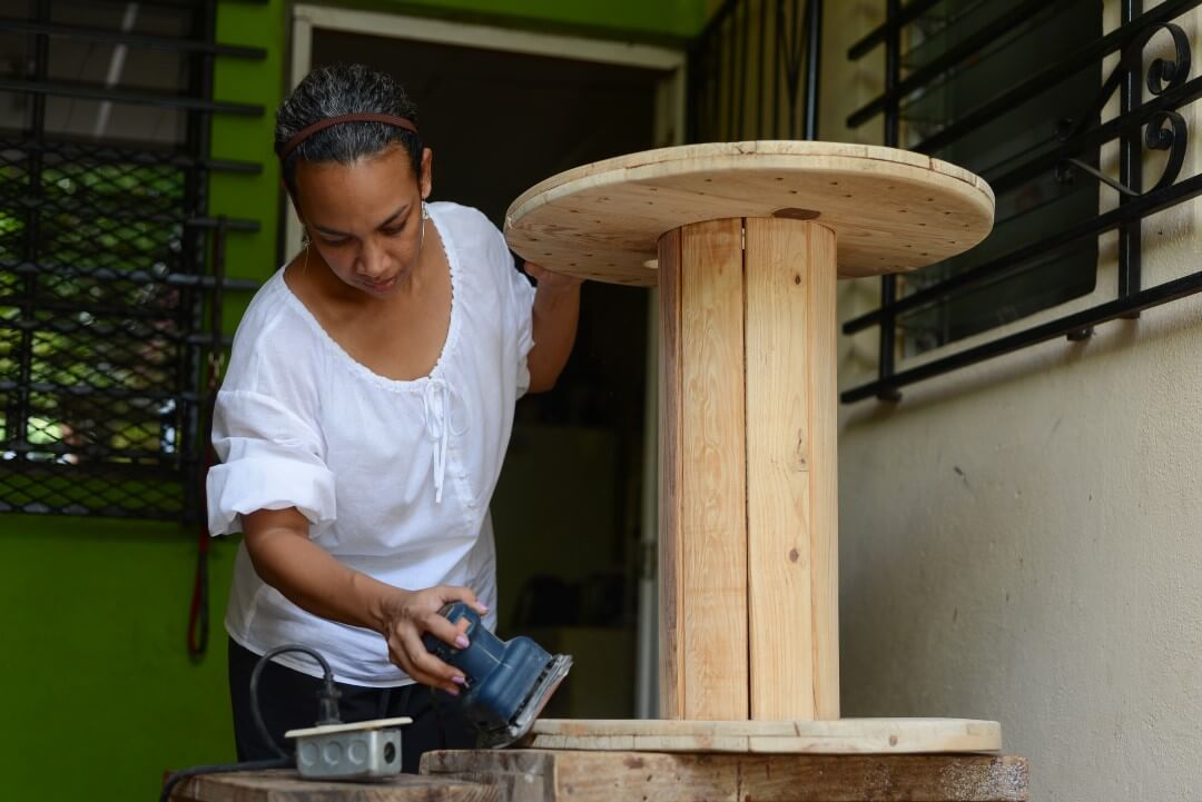 Los grandes carretes de madera que Rosana colecciona se utilizan para transportar cables industriales. Ella los recupera y los lleva al taller que acondicionó en su casa, donde los corta, lija, pule, barniza y pinta para darles un mejor aspecto. De ser un desecho, las piezas pasan a ser muebles funcionales para el hogar. La empresaria asegura que sus creaciones han tenido una buena aceptación con el paso de los años, tanto por el acabado que ella le da a las piezas como por los precios, cuyo rango varía entre los C$270 y C$7 mil córdobas, dependiendo del trabajo que conlleve.